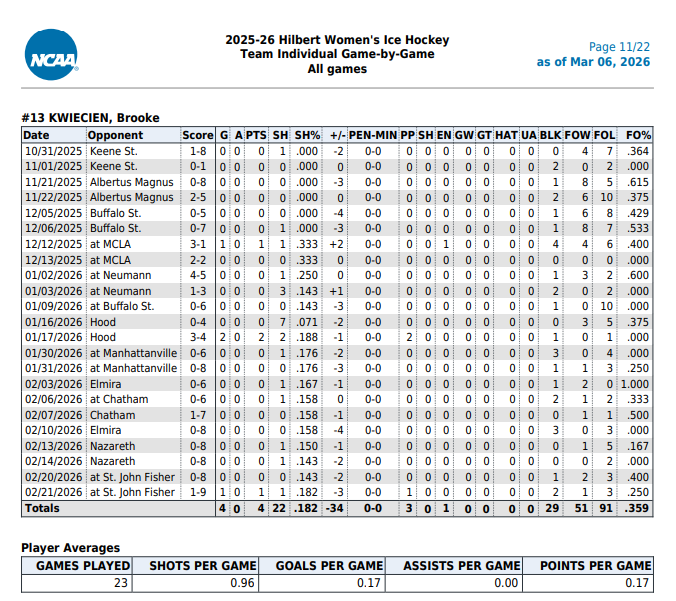 2025-26 junior... appeared in 23 games... recorded four points on four goals... led team with three powerplay goals... took 25 shots and blocked 30 shots... won 55 faceoffs... season stats